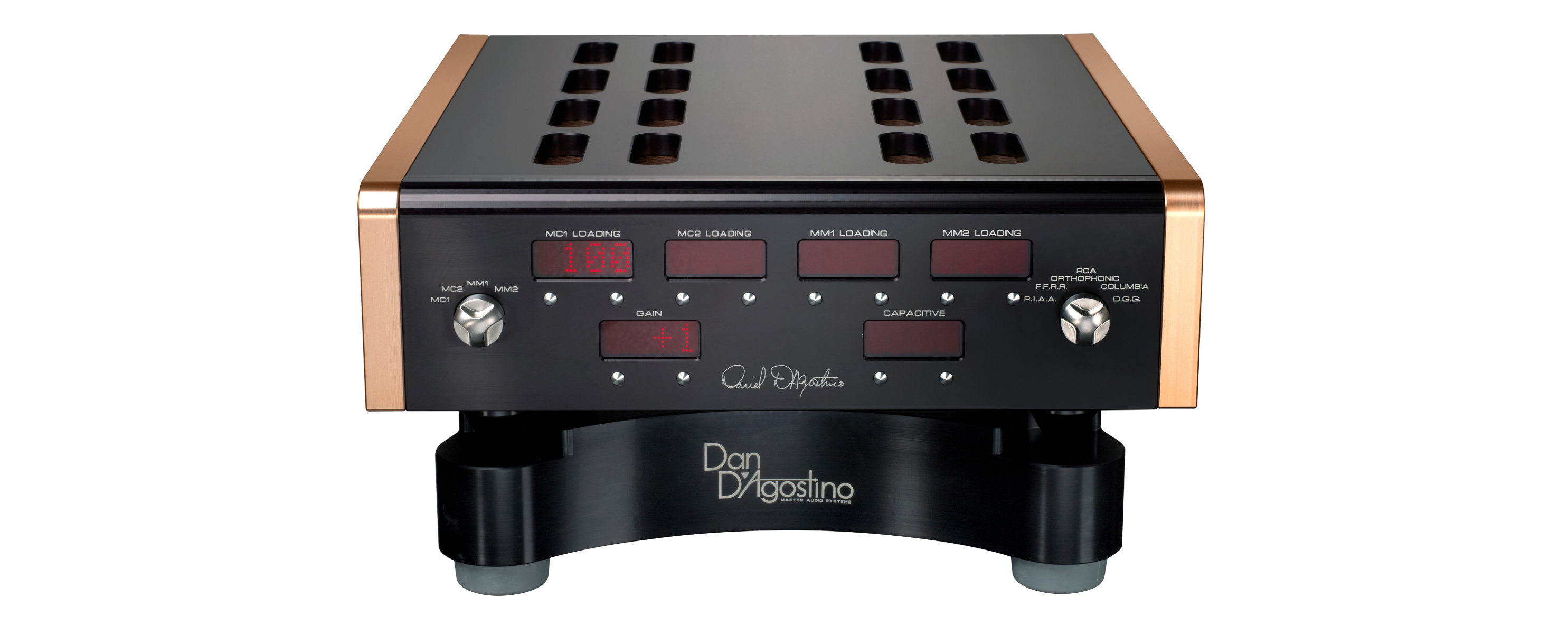 Da grande appassionato Dan ama seguire la sua musa ispiratrice modificando il suo impianto di riproduzione di riferimento in ossequio ad un ideale musicale in continua trasformazione. In tal senso non accetta limitazioni e proprio per questo ha dotato il suo Phono Stage con abbastanza ingressi da gestire multiple sorgenti analogiche, sia XLR che RCA. Componentistica allo stato dell’arte, provata dallo stesso Dan nelle diverse configurazioni per ottimizzare le prestazioni di una macchina da musica che come per tutte le realizzazioni della Dan D'Agostino Master Audio Systems è costruita a mano nella sede in Arizona.