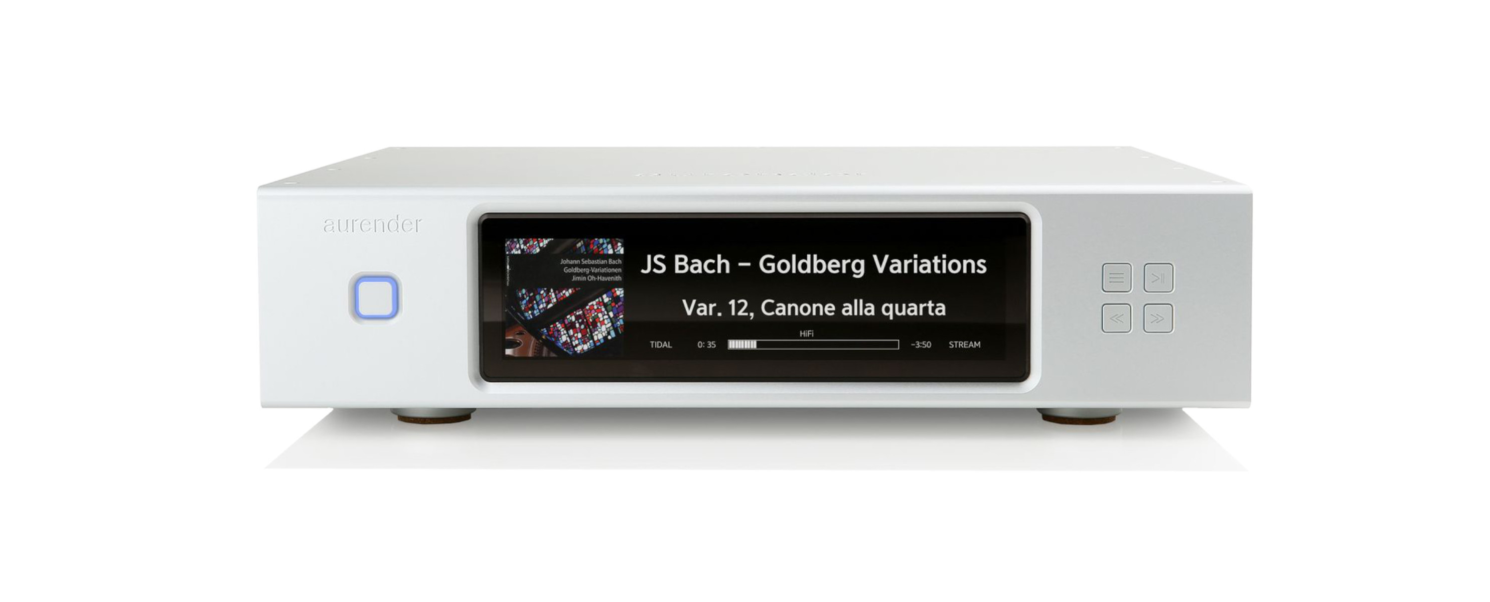 Specifiche fisiche Dimensions 16.9"W x 14"W x 4.4"H (3.9"H) Peso 29,8 lb Materiale lavorato telaio in alluminio Display del pannello frontale 8,8" 1920 x 480 Ampio LCD a colori IPS   Specifiche tecniche Alimentazione 1x50W (CPU), 2x35W (4 core) per scheda di uscita digitale CPU Intel Quad Core a bassa potenza RAM 8GB Capacità di archiviazione della libreria 2X 2,5" Scomparti (User-Installable Storage) SSD per sistema e cache 480GB NVME Porte USB dati 2X USB 3.0 (posteriore) Software Suite Aurender Conductor Porta Ethernet Gigabit LAN a doppio isolamento Gruppo di continuità (UPS)  Sì (Super condensatori) Consumo energetico Play (40W), Picco (70W), Standby (3.5W) Capacità di estrazione del CD N/A Specifiche audio Uscite analogiche N/A DAC Chipset N/A Orologio Word audio OCXO Formato N/A supportato da uscite analogiche Uscite digitali USB Audio (dedicato), AES/EBU (controllato OCXO), BNC Coax SPDIF (controllato OCXO), RCA Coax SPDIF (controllato OCXO), ottico/Toslink SPDIF (controllato OCXO) Formato di uscita USB supportato fino a 32 bit / 384kHz, DSD128 (DoP), DSD512 (nativo) SPDIF & AES/EBU Formato di uscita supportato PCM: fino a 32 bit / 192 kHz; DSD: fino a DSD64 tramite DoP Ingressi digitali N/A Sezione cuffie N/A Master Clock Input coassiale BNC 75Ω - 10MHz, 12.8MHz, 44.1-48kHz (multipli da 1-512x) MQA Supporto MQA Core-Decoder Aggiornamento disponibile Formati compatibili DSD (DSF, DFF), WAV, FLAC, AIFF, ALAC, M4A, APE e altri Conversione da DSD a PCM DSD64/128/256/512 a 88.2/176.4kHz