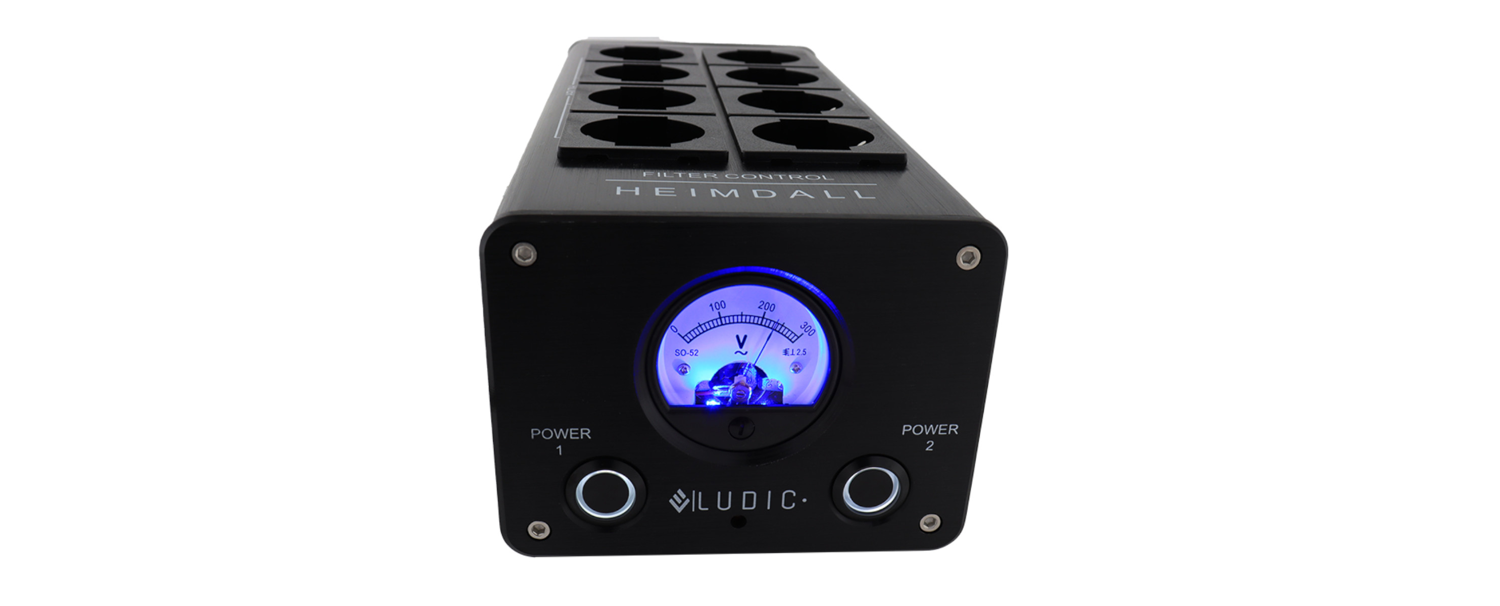 Il filtro di rete di potenza LUDIC HEIMDALL sopprime completamente tutte le interferenze indesiderate del sistema di alimentazione e dai dispositivi collegati. Il design tecnico è alloggiato in un robusto involucro metallico con un pannello frontale in alluminio spazzolato argento o nero e un sottotelaio smorzato che riduce le vibrazioni meccaniche dei componenti del filtro causate dalla frequenza a 50 Hz. Otto prese di corrente di alta qualità sono disponibili sul pannello superiore. L'ingresso di alimentazione ad alta corrente posizionato centralmente consente una facile sostituzione del cavo di alimentazione, ad esempio LUDIC POLARIS o LUDIC AESIR. Il soppressore di sovratensioni integrato protegge i dispositivi dai picchi di tensione. Una luce a LED situata nella parte inferiore del pannello frontale mostra lo stato operativo attuale: la luce rossa è per il controllo della connessione di terra. I 2 pulsanti sul pannello frontale sono illuminati di bianco quando sono accesi, e indicano che le prese di corrente sono attive.