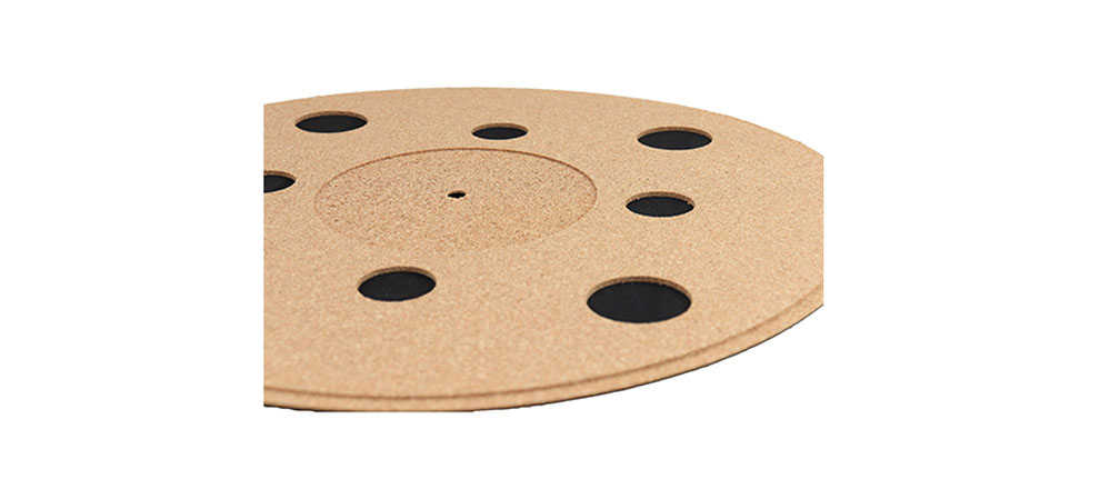 Lo spessore è di 1,5 mm. Lo spesso strato superiore è realizzato in vero sughero con un plateau centrale più profondo per una perfetta connessione dell'etichetta discografica inoltre il tappetino ed è dotato di 8 fori. I fori forniscono uno smorzamento ulteriormente migliorato.