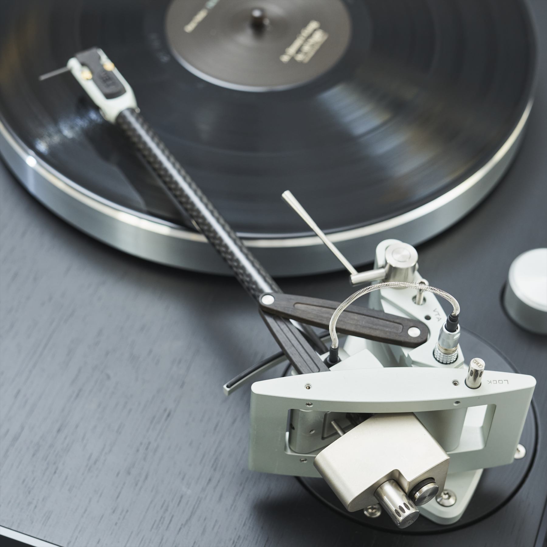 INFORMAZIONI SUL TT01 Il giradischi è azionato da una cinghia piatta. Il perno del piatto è un cuscinetto liscio da 10 mm con una sfera in ceramica da 7 mm. Il fondo del perno è realizzato con un foro centrale, così da far scorrere la sfera su un anello circolare definito. Questo crea una coppia frenante uniforme e controllata che costringe il motore di trazione a funzionare costantemente contro un piccolo carico. Questa coppia di frenatura rende più regolare la rotazione meccanica del motore. Il tutto è ulteriormente supportato dall’uso di grasso per l’asse del perno invece dell’olio. Il piatto è composto da tre parti: sottopiatto, disco in acrilico e anello esterno. Questa combinazione di materiali contribuisce a smorzare le vibrazioni e a rendere più uniforme la rotazione del piatto. I preamplificatori phono possono essere collegati tramite uscite bilanciate XLR. Il braccio è fissato al supporto tramite una sfera centrale in acciaio e quattro viti disposte a parallelogramma. Il contatto tramite questi cinque punti ha un effetto isolante sulle risonanze tra il telaio e il braccio. Il supporto circolare del braccio, montato sul livello centrale dello chassis, presenta solo quattro punti di contatto puntiformi con lo chassis. Il principio di base di questo sistema di trazione è l’isolamento graduale dei singoli componenti, garantendo al contempo la massima solidità meccanica.
